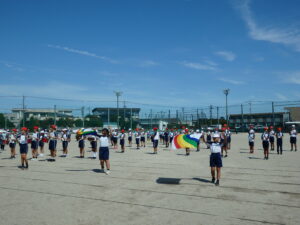 本番では、晴天の中、全員種目の100m走と50mハードル走、選手種目の走り高跳び、走り幅跳び、ソフトボール投げ、中距離走、400mリレーに一生懸命取り組みました。一人一人がめあての達成に向け、全力で取り組んでいました。また、友達が競技する姿を全力で応援したり、活躍を一緒に喜んだりして、大会を楽しんでいました。