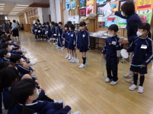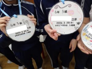 6年生を送る会 招待状おわたし会 2026年2月20日 1年生, 6年生 2月19日(木)に、6年生を送る会への招待状おわたし会をしました。1年生が一つ一つ心を込めて作ったメダル型の招待状を、6年生の首にかけてくれました。6年生は、招待状にあるメッセージや絵を見て、とてもうれしそうで、2月25日(水)の6年生を送る会を楽しみにしている気持ちが大きくなったようでした。