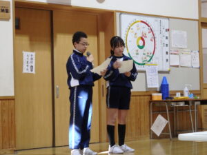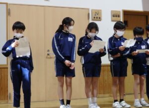 3月5日(木)に、ショート集会を行いました。放送委員会が進行を務め、今月の歌「校歌」を全校で合唱しました。