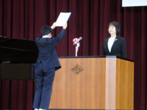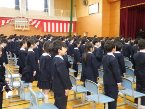 3月24日(火)に、修了式を行いました。各学年の課程を無事に終えることができました。各学級の代表者は、大きな返事をして、校長先生から修了証を受け取りました。その姿は、とても立派でした。