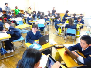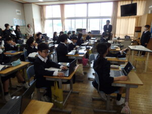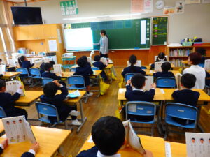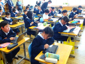 学習参観では、子供たちは緊張しながらも、新しい教室で、友達や担任の先生と一緒に、一生懸命学習に取り組んでいました。