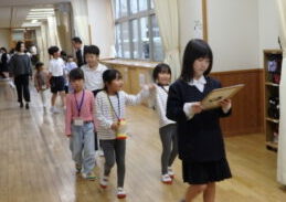 10月16日(木)に、就学時健康診断がありました。5年生が、各検診の補助をしたり、就学児と手をつなぎながら案内したりしました。5年生は就学児に「こっちだよ。」「トイレに行く?大丈夫?」等、優しく声をかけたり、待ち時間に一緒に本を読んであげたりと、お兄さんお姉さんらしい姿を見せていました。