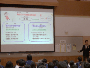 11月17日(月)に、睡眠の大切さを知り、寝る時間を見直そう」をテーマに、学校保健委員会を実施しました。