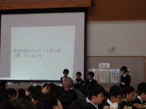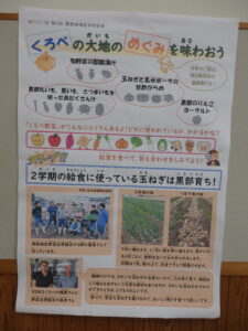給食委員会が出した給食クイズを通して、子供たちは、お米の作られ方や栄養バランスについて学ぶことができました。これからも、感謝の気持ちを忘れずに、黒部市でとれたお米や野菜、名水ポーク等の食材がたくさん使われた給食を、もりもり食べていきたいです。