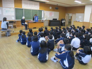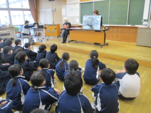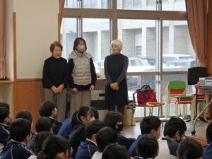 12月11日(木)、12月15日(月)に、宇奈月の「おはなしたんぽぽ」から3名の方に来ていただき、3年生と6年生を対象に、「わたしは百年桜」の絵本の読み聞かせをしていただきました。総合的な学習の時間で学習した百年桜について、校外学習や三日市街歩き協会の講師の方から教えていただいたことを振り返ることができました。