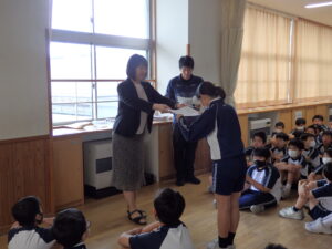 本に親しもう集会 2025年11月14日 委員会 11月12日(水)に、ショート集会を行いました。放送委員会が進行を務め、今月の歌「夢の世界を」を全校で合唱しました。 今回は、「本を読みたくなるように図書室や本についてくわしくなろう」のめあてのもと、図書委員会が発表をしました。図書館クイズを通して、桜井小学校にある本に興味をもったり、読書のよさを確認したりすることができました。 11月18日まで、校内読書週間です。たくさんの本にふれ、読書の楽しさをあじわいましょう。